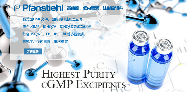“熱烈祝賀Pfanstiehl的注射級甘氨酸Glycine(G-140)喜獲CDE登記號F20250000403, 這是Pfanstiehl產品獲得的第18個CDE登記號!”甘氨酸在醫藥輔料制劑中應用廣泛,, 可作為緩沖劑,增溶劑,穩定劑等,具有諸多優勢。Pfanstiehl秉承一貫高品質理念,為滿足全球生物制藥行業對于高品質甘氨酸的需求,隆重推出的注射級甘氨酸Glycine (G-140), 具有超高純度,超低內毒素,超低金屬殘留的特點,單獨檢測29種金屬離子,并且新增DNA,RNA,DNA酶,RNA酶和脂肪酶,亞硝酸鹽等多項質量指標的檢測,符合多國藥典規定(USP, EP, BP, JPE, ChP),可用于生物治療性藥物和疫苗的生產。產品信息:· 產品名稱:Glycine, High Purity, Low Endotoxin, Low Metals, USP, EP, BP, JPE, ChP (G-140)· 中文名稱:甘氨酸· 分子式:C2H5NO2· 分子量:75.07 g / mol· CAS號:56-40-6· 產品貨號:G-140產品特點: · 超高純度,超低內毒素,超低微生物含量,超低金屬雜質殘留· 質量指標新增DNA,RNA,DNA酶,RNA酶,脂肪酶和亞硝酸鹽檢測· 符合多國藥典:USP, EP, BP, JPE, ChP· 符合ICH Q3D標準· 符合GMP標準· 已獲DMF和CDE登記號 產品應用:· 緩沖劑· 穩定劑· 增溶劑如果您對Pfanstiehl注射級別Glycine G-140感興趣,歡迎聯系Pfanstiehl 中國區代理商北京西美杰科技有限公司獲得如下詳細的產品概況說明文件和測試樣品。Pfanstiehl Inc.最新產品系列如下,歡迎聯系北京西美杰科技有限公司獲取100g裝免費樣品。北京西美杰科技有限公司為Pfanstiehl中國代理,為客戶提供完善的技術支持與售后服務。歡迎撥打西美杰客服電話400-050-4006或者登陸網站www_xmjsci_com.aiyo123.com了解更多信息。 更多>